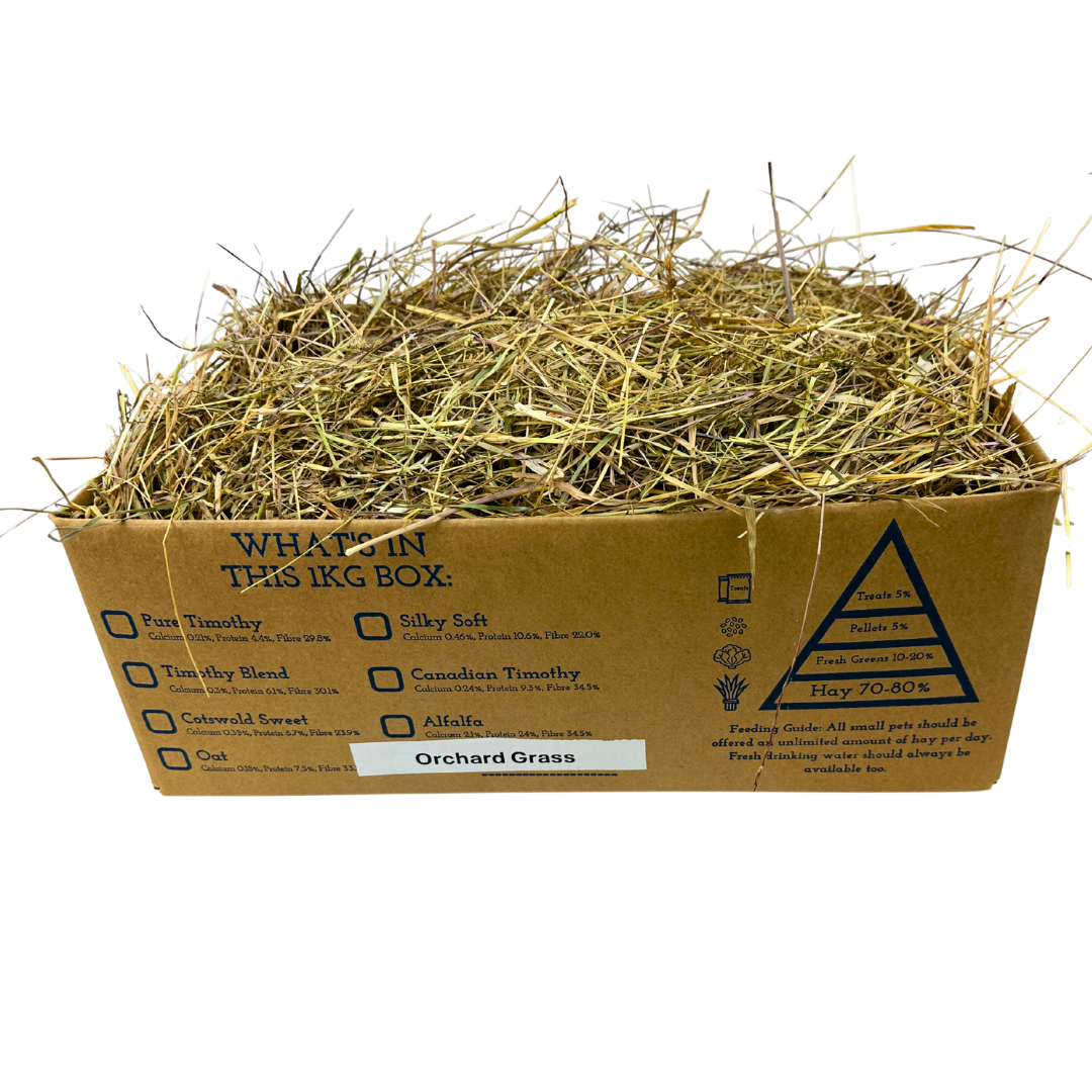 Orchard grass hay is a softer, sweeter alternative to timothy hay, making it a tempting option for pets with selective appetites. Its golden strands bring both variety and enrichment to your pet’s diet. Offer as a part of your hay rotation to keep pets inquisitive and prevent fussy feeding!